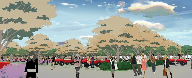 建筑設(shè)計(jì)主要采用簡(jiǎn)歐風(fēng)格,遵循“尊重自然、綠色生態(tài)、建筑風(fēng)貌、景觀營(yíng)造、可持續(xù)發(fā)展、低碳環(huán)保”的原則,布置在景區(qū)主干道右側(cè)和左側(cè)部分地塊,主要滿(mǎn)足大巴、中巴、小車(chē)、電瓶車(chē)以及回遷居民住宅。規(guī)劃區(qū)停車(chē)場(chǎng)設(shè)有四個(gè)車(chē)行主要出入口,其中兩個(gè)主要滿(mǎn)足停車(chē)場(chǎng)內(nèi)部車(chē)輛進(jìn)出,一個(gè)滿(mǎn)足電瓶車(chē)出入停車(chē)場(chǎng),一個(gè)滿(mǎn)足回遷建筑出入。建筑前廣場(chǎng)主要考慮人流集散,后庭院主要突出景觀營(yíng)造,通過(guò)對(duì)商業(yè)零售、回遷居住、景區(qū)服務(wù)、汽車(chē)維修等配套商業(yè)設(shè)施的建設(shè)滿(mǎn)足游客游覽需求。