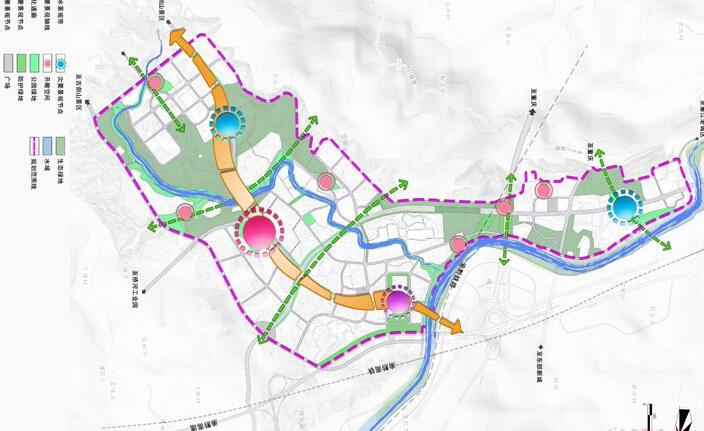 將有活力連續(xù)的街道、街區(qū)和公園用完善的步行系統(tǒng)和綠色廊道串聯(lián),加強(qiáng)山與城、水與城、山與水的對(duì)話(huà),聯(lián)系起基地的生態(tài)要素,構(gòu)筑城市的生態(tài)基底。在這個(gè)基底之上,打造山環(huán)水繞的城市環(huán)境、高品質(zhì)社區(qū)、汽摩交易中心、社區(qū)生活中心,使基地成為未來(lái)城市的活力源泉、文化源泉、發(fā)展源泉和形象高地。