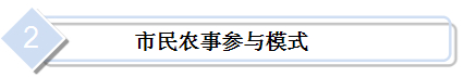 ▲可由農(nóng)民提供土地,讓市民參與耕作的園地。一般是將位于近郊的農(nóng)地集中規(guī)劃為若干小區(qū),分別出租給城市居民,用以種植花草、蔬菜、果樹或經(jīng)營家庭農(nóng)藝,其主要目的是讓市民體驗(yàn)農(nóng)業(yè)生產(chǎn)過程,享受耕作樂趣。市民農(nóng)園以休閑體驗(yàn)為主,多數(shù)租用者只利用節(jié)假日到農(nóng)園作業(yè),平時交由農(nóng)地提供者代管。根據(jù)使用對象的不同,該模式分為家庭農(nóng)園、兒童農(nóng)園、銀發(fā)農(nóng)園3種類型。