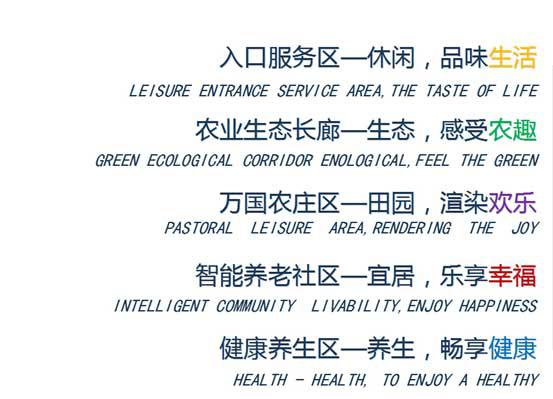 打造理想化、品質化、綜合化的能夠盡享田園生活、暢享養老生活、認知農業創意、體驗休閑樂趣、品味多元文化、快樂養生養心……的